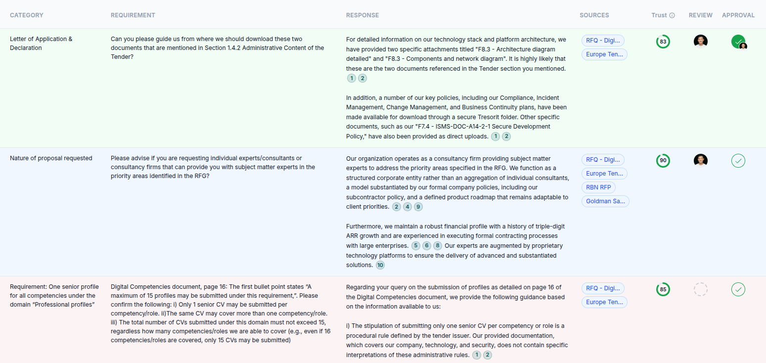 The review workflow lets your team collaborate on QA pair quality. Assign reviewers, track progress through visual states, and approve content in bulk. This works the same way in both Library sources and Project sources — anywhere you manage QA pairs.Review States