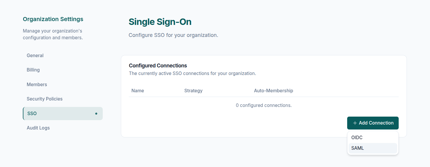 Available on Advanced and Enterprise tiers Connect Zephior to your organization’s identity provider so team members can sign in with their corporate credentials.